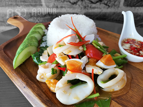 ข้าวราดหมึกผัดไข่เค็ม